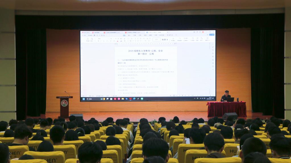 9月23日下午,动物科技学院开展2025级新生“日常行为规范”入学教育讲座,学院辅导员王宝、杨智共同主讲。