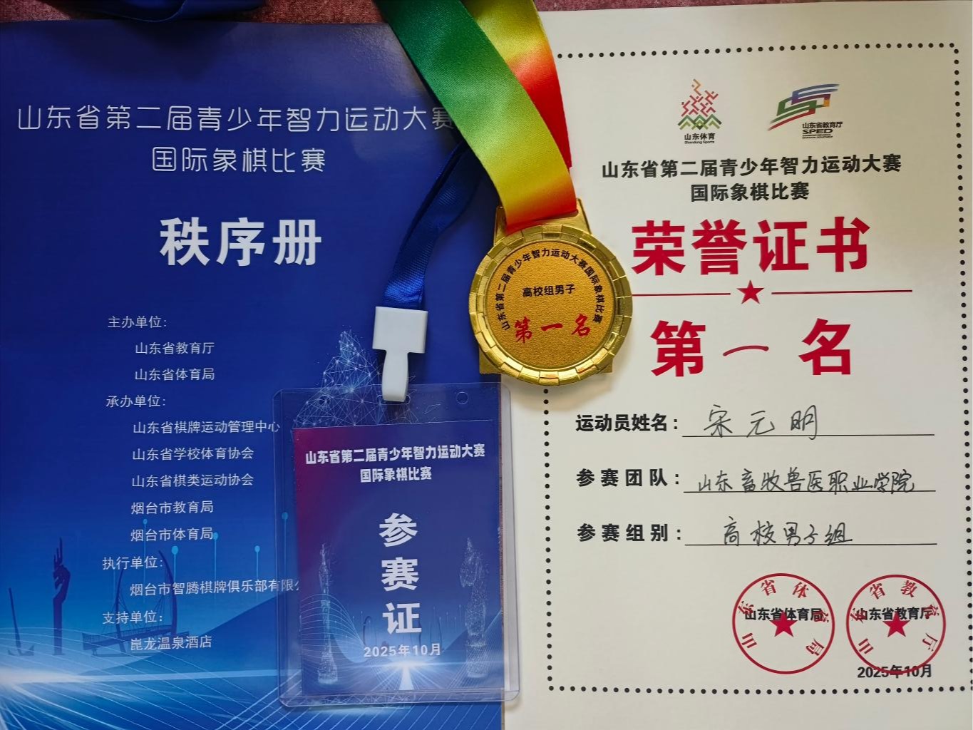在刚刚落幕的山东省第二届青少年智力运动大赛国际象棋比赛中,动物科技学院2024级畜牧兽医专本贯通2班宋元明同学发挥出色,以七战全胜的骄人战绩,勇夺高校组男子个人冠军!