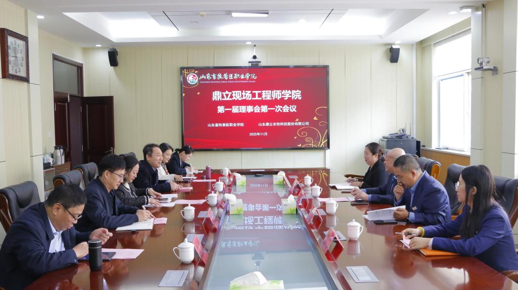 11月6日,鼎立现场工程师学院第一届理事会第一次会议在学校举行。学校副校长于淼,动物科技学院党总支书记赵满达、副书记都振玉,山东鼎立农牧科技股份有限公司董事长刘仁众、公司总裁巩新民、副总裁辛同芹出席会议。