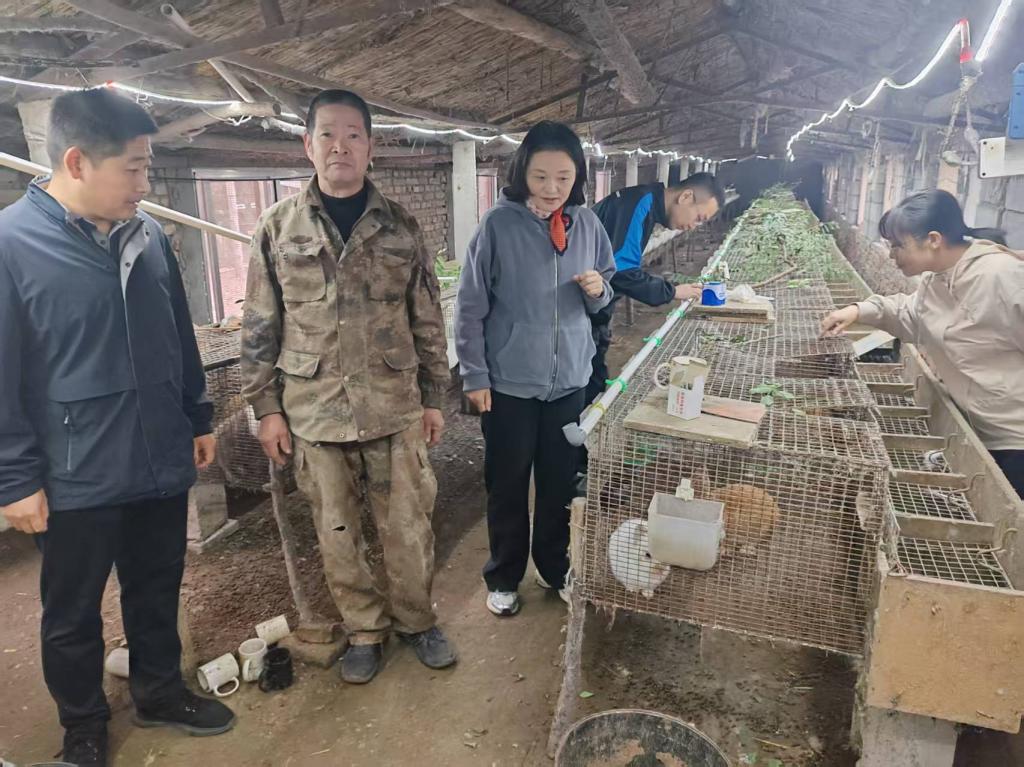 在五图街道四泉村,服务团为宠物兔养殖户刘春明提供了宠物兔品种选择、饲料配比与饲喂量控制、性状固定遗传等方面的技术指导,有效提升了养殖户的专业能力。