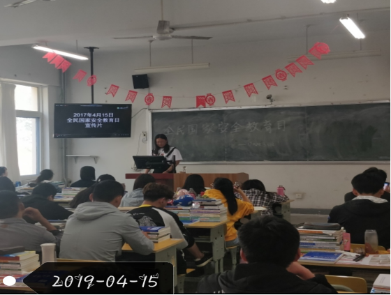 2019年4月15日下午自习课,17级大专畜牧兽医三班全体同学利用多媒体电视观看了关于“全民国家安全教育日”宣传片。