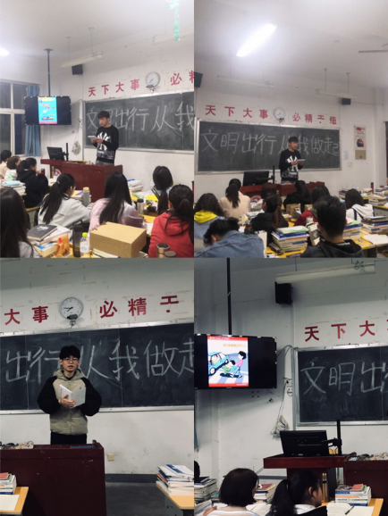 17大牧六班于3月28日晚自习在班内开展文明出行从我做起主题班会,旨在提高师生文明健康素质和社会文明程度,提升我校学生文明素质,养成良好习惯。