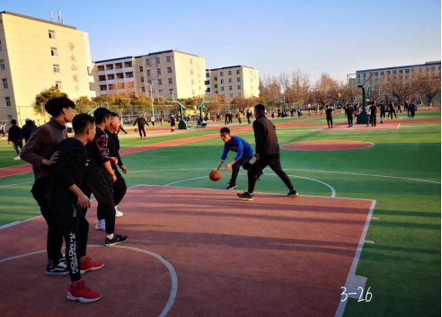 分为两队,赛场上队员们充分展现出团结的精神,运球,传球,投篮,无一不配合默契,女生加油助阵。两队队员在球场上不甘示弱,不愿放过每一个球。比赛结束后两队打打闹闹共用毛巾,友谊在比赛中加深。