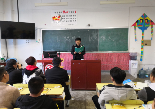 2019年3月19日下午,18级机电一体化二班为了让同学们更加有礼貌更加诚实守信,利用课外活动时间在教室举办“以诚待人,以礼待人”主题班会。