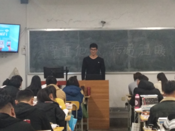 2018年12月3日,18大牧四班于为了让同学们认识到每个人都需要被人欣赏、赞美和尊重。在教室举办“尊重他人,传递温暖”主题班会。
