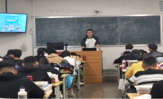 为增强同学们的安全防范意识,提高同学们的安全防范能力,全面普及校园安全常识,18级大牧四班开展冬季安全教育主题班会,此次班会于2018年11月19日在教室展开,18级大牧四班全体同学参加了此次班会。 班会开始后,班长简要介绍了关于冬季安全教育方面的知识,然后通过视频形象的向同学们讲述了校园周边存在的一些安全隐患和校园安全常识。在同学们的积极参与中,本次班会画上了圆满的句号。