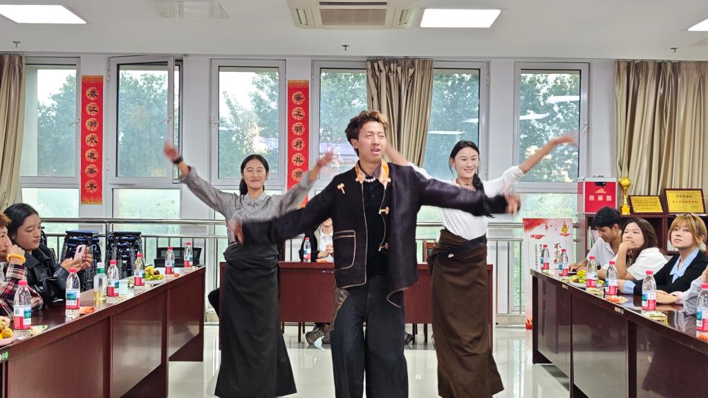活动中,都振玉结合援青经历致辞,以亲身故事传递“各民族亲如一家”的温暖,期许师生借“双节”契机加深交流、凝聚同心;少数民族老师代表何孟莲随后发言,鼓励学子“身处学院大家庭,言行代表民族形象,当以积极风貌增进民族情谊”,真挚话语引发共鸣,她还献歌一曲,用悠扬歌声传递祝福。随后,不同地域、民族的学子分享家乡习俗与节日故事,从婉转悠扬的民族歌曲到热情洋溢的民族舞蹈,生动展现多元文化魅力,让在场师生深切感受文化交融的活力。