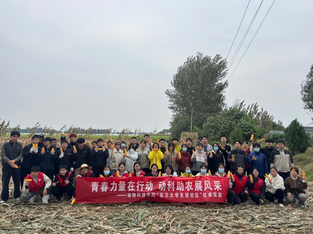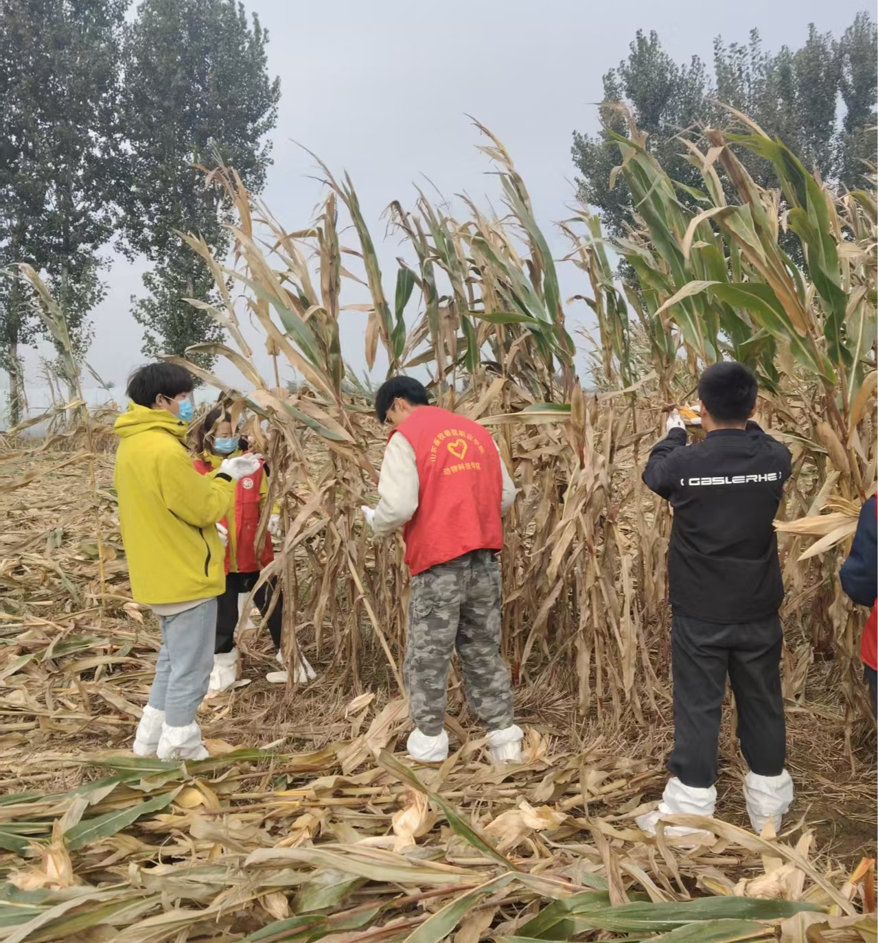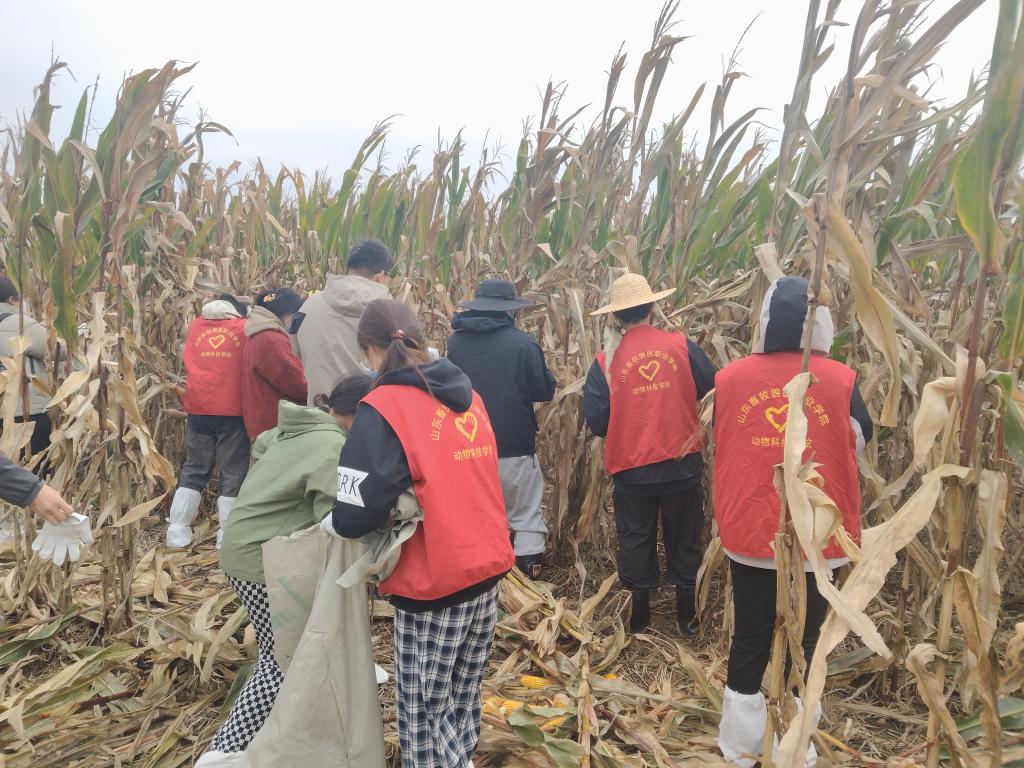 10月19日,动物科技学院教师杨智、基础教学部教师刘鹏伟和房秀娟,带领学院48名入党积极分子和学生志愿者赴寒亭区开展玉米抢收助农志愿服务。