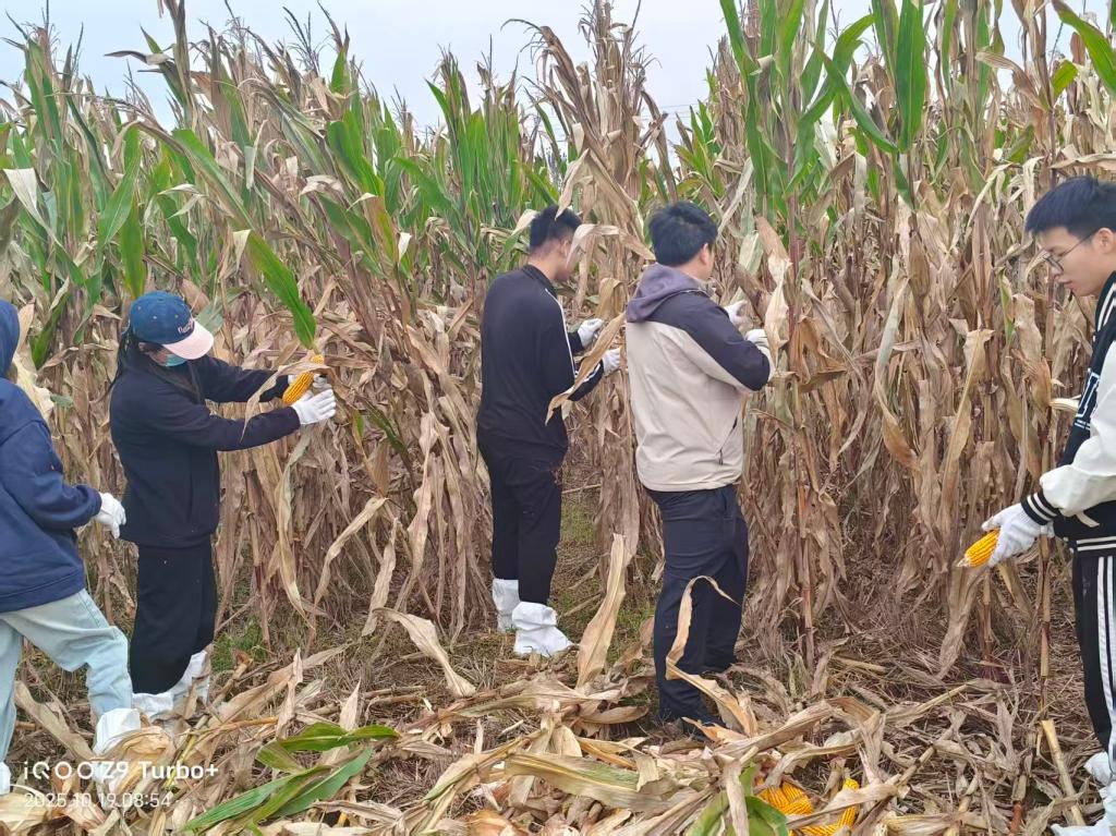 秋风瑟瑟,寒意袭人,师生们抵达田间后迅速投入到玉米抢收工作中。大家分工协作,掰玉米、装袋、运输,配合默契,同学们俯身田间、干劲十足,现场忙碌而有序。一车车金黄的玉米被陆续运送到农户家中,师生们的温暖与关怀也传递到了村民的心间,农户对师生们的帮助表示衷心感谢。