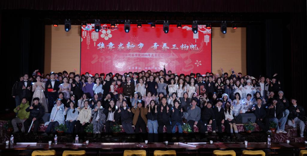 12月26日,动物科技学院“华章启新岁 青春正扬帆”2026年元旦晚会在图书信息中心一楼报告厅圆满举办。学校领导、合作企业嘉宾与学院500余名师生齐聚现场,共赴岁末盛宴,活动同步线上直播。