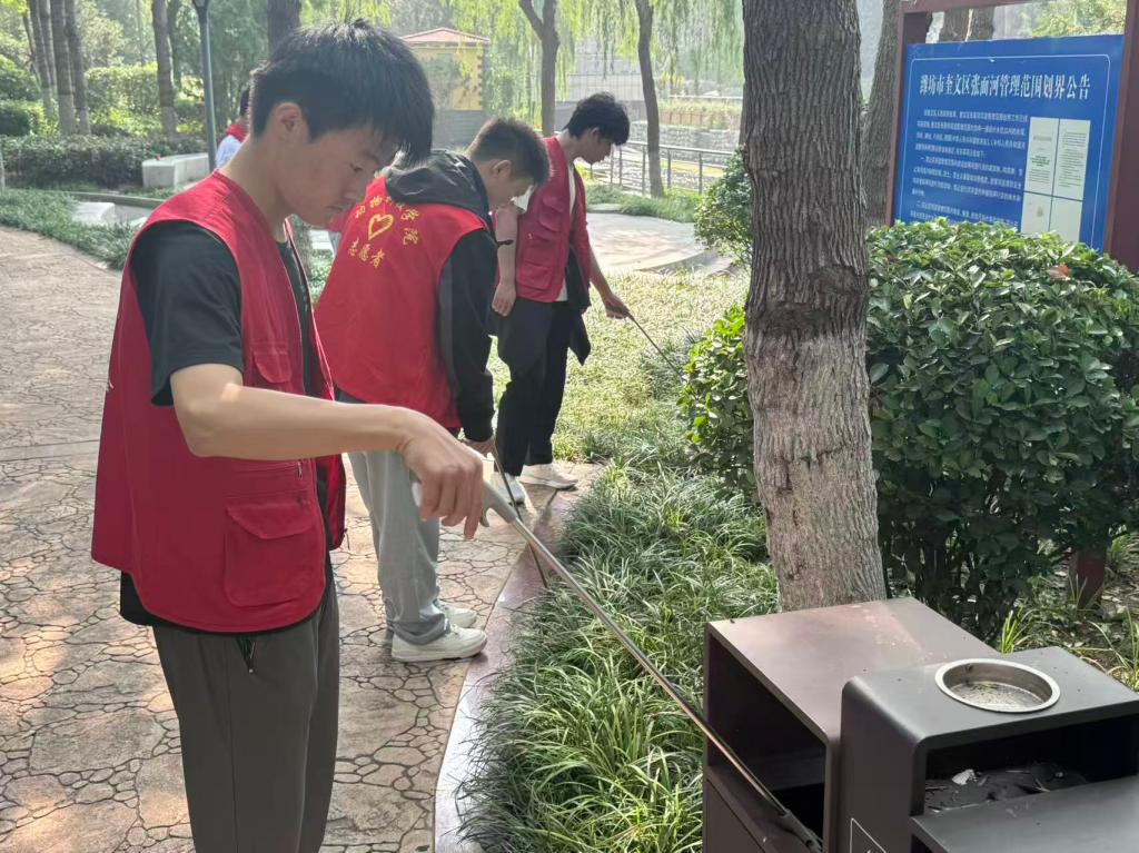 活动中,同学们参与 “强化国防意识” 专题学习与中华民族共同体意识教育,在理论学习中厚植爱国情怀;志愿服务阶段,同学们不仅清理社区公共区域及卫生死角、改善居住环境,还先后前往河滨公园,通过发放手册、现场讲解等方式向居民普及防溺水知识,为“双节”筑牢安全防线。